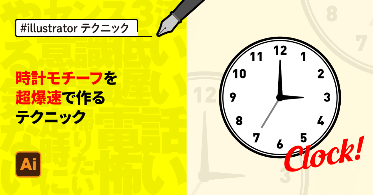 皆様おはこんばんチワッス!ゲラです! さてさて今回のテーマは 時計モチーフを超爆速で作るテクニック でございます! 時計のモチーフって商業デザインで結構使うことも多いのに、意外と作るのめんどくさくないですか?? 何が一番めんどくさいって、数...
