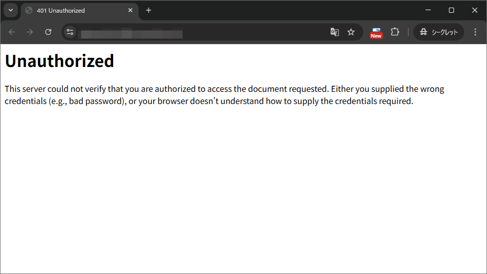 普段通りにBasic認証を行ったらエラーが表示された。