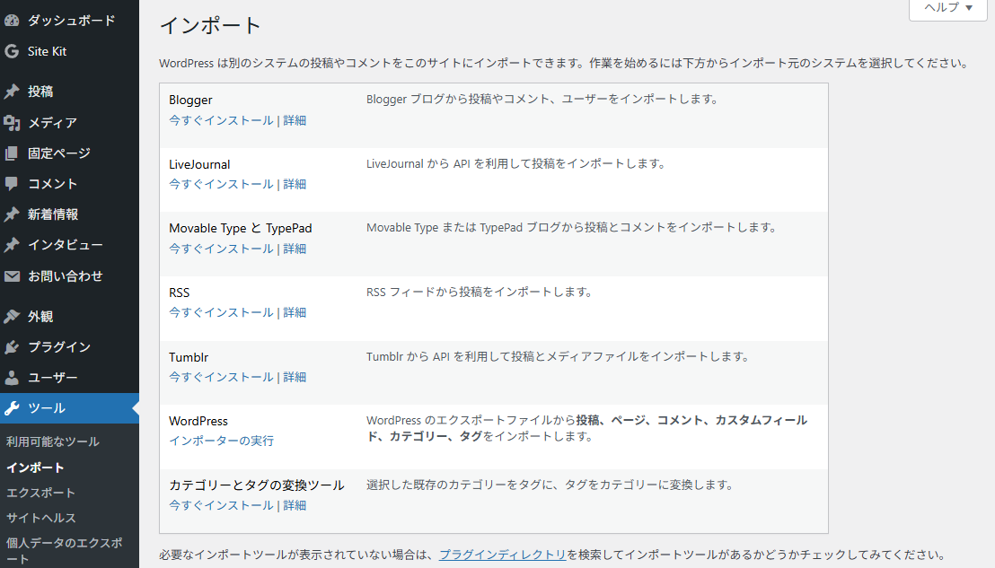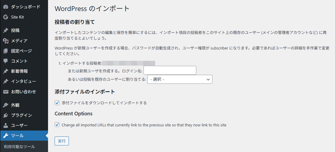 WordPressの「インポーターの実行」をクリック。