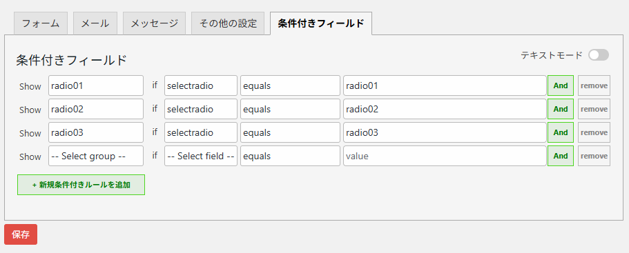 「条件付きフィールド」タブ